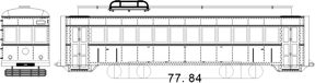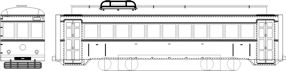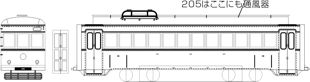 ![]() 妻面外板を更新、中央窓がHゴム支持になり902にアンテナがついたころ (902屋根のアンテナ取付穴があるか否か、およびキャブ手すり位置の差で類型車体2両組) ヘッドライト、テールライト、パンタ、台車、床下機器など別途必要(動力化は考慮していません) 図では台車が旧スタイルですがこの台車側面は付属しません |