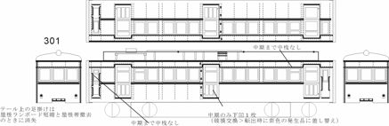 | 301C7 | 品切 | 菊池の日立 | これは腰板が高い電車。 床下、台車、パンタ、ライト、ベンチレーター他が必要 ![]() |