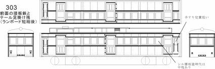 | 303G | 在庫僅少 | 菊池の銀色2連裾コルゲート撤去(6231+6238) | 車体側面裾のコルゲート撤去した編成(2004年にはまだ裾コルゲートあり、後年改造)