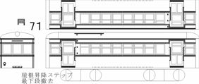 乗務員扉設置、客扉を中央に寄せた両運。 裾リベットを中央扉下以外を直線並びに、また屋根上とドア周囲を一部変更。 床下、台車、パンタ、ライト、ベンチレーター他が必要 ![]() |