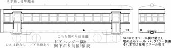 ![]() 耶馬渓での末期、ノーヘッダでリベットレス更新。 テールライト埋込、通風器撤去 別途必要:テールライトレンズ、片側絶縁車輪、カプラーなど |